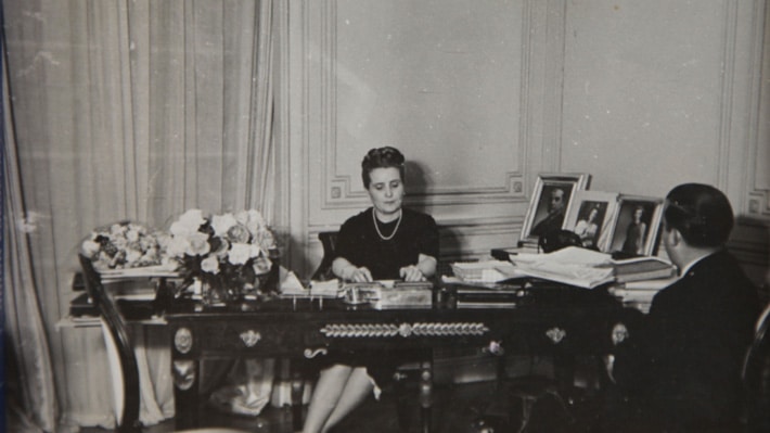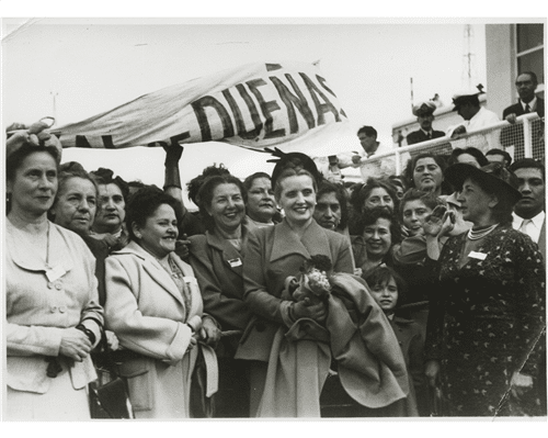 Filter CategoriesFilter - All Miti Markmann Este es el pasaporte que usó Miti y su familia para viajar a Francia en 1939 cuando Gabriel Gonzalez fue nominado embajador en ese país. Gabriel y Miti recién casados esperando el barco que los llevaría a La Serena. A los 13 años Miti fue elegida reina de la primavera en tal tal. En la foto la primera a la izquierda. Esta es la única del matrimonio de Gabriel y Miti celebrado en febrero de 1926. En 1948 Gabriel Gonzalez se convirtió en el primer presidente chileno en pisar la Antártica. En la foto junto a su familia y comitiva. Reencuentro de Miti y Gabriel en el aeropuerto De Santiago al regreso del viaje de ella a Estados Unidos para recibir el premio de madre universal. En su visita a EEUU Miti en la ONU junto a Eleanor Roosvelt esposa del ex presidente Franklin Roosvelt. Miti creó la oficina de la mujer para recibir las inquietudes de las mujeres chilenas. En la foto, la oficina ubicada en el palacio de la moneda. Miti creo la asociación de dueñas de casa para que actuaran unidas para defender sus derechos.
